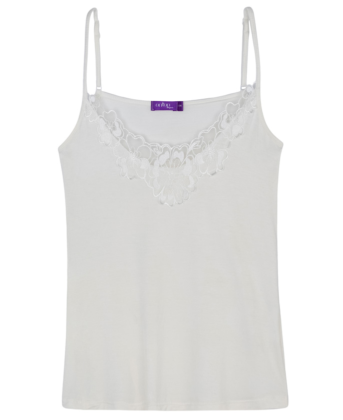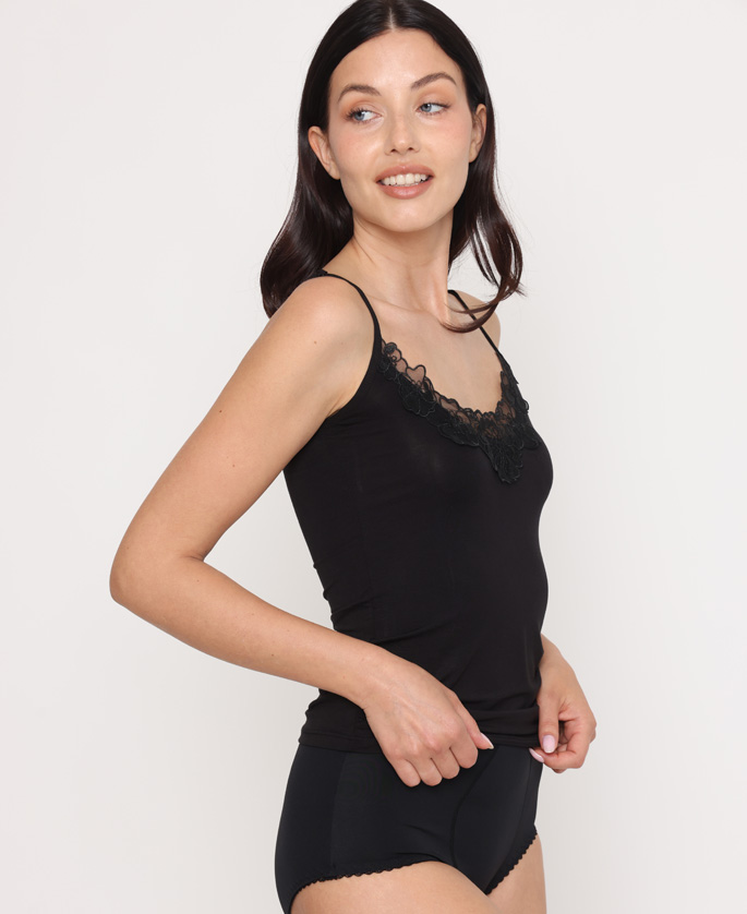 • גופייה עם כתפיות ספגטי דקות בעיטור תחרה