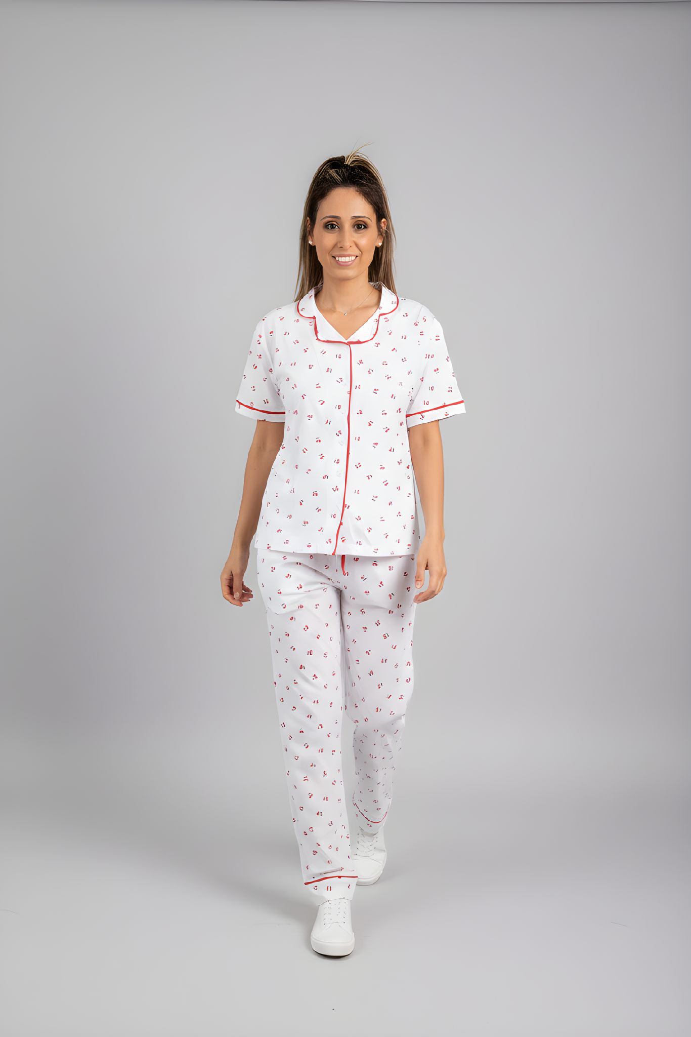 • סט פיג'מה מכופתרת עם הדפס דובדבן עדין