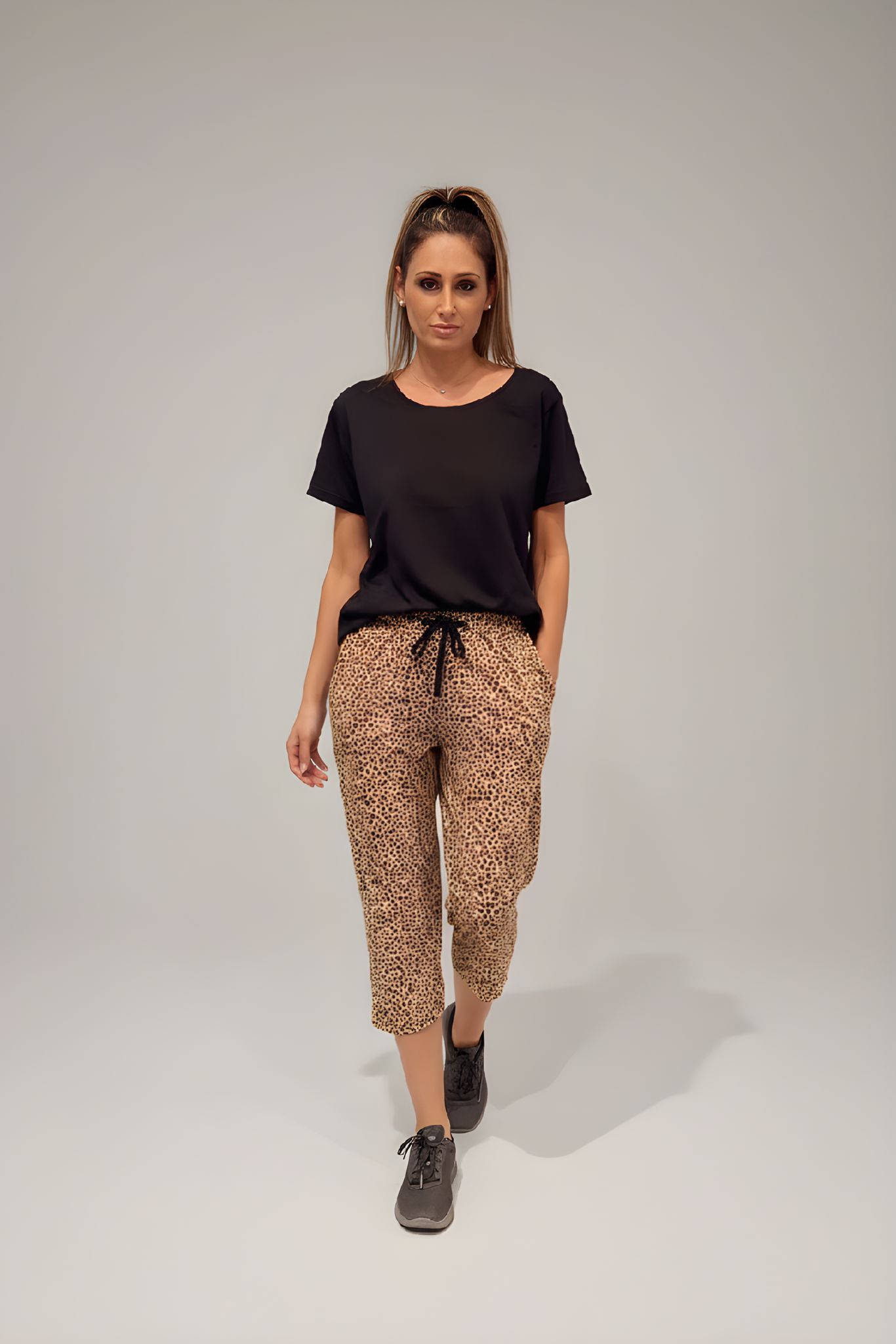• מכנסיים 7/8 עם גומי נוח המותאם למותן