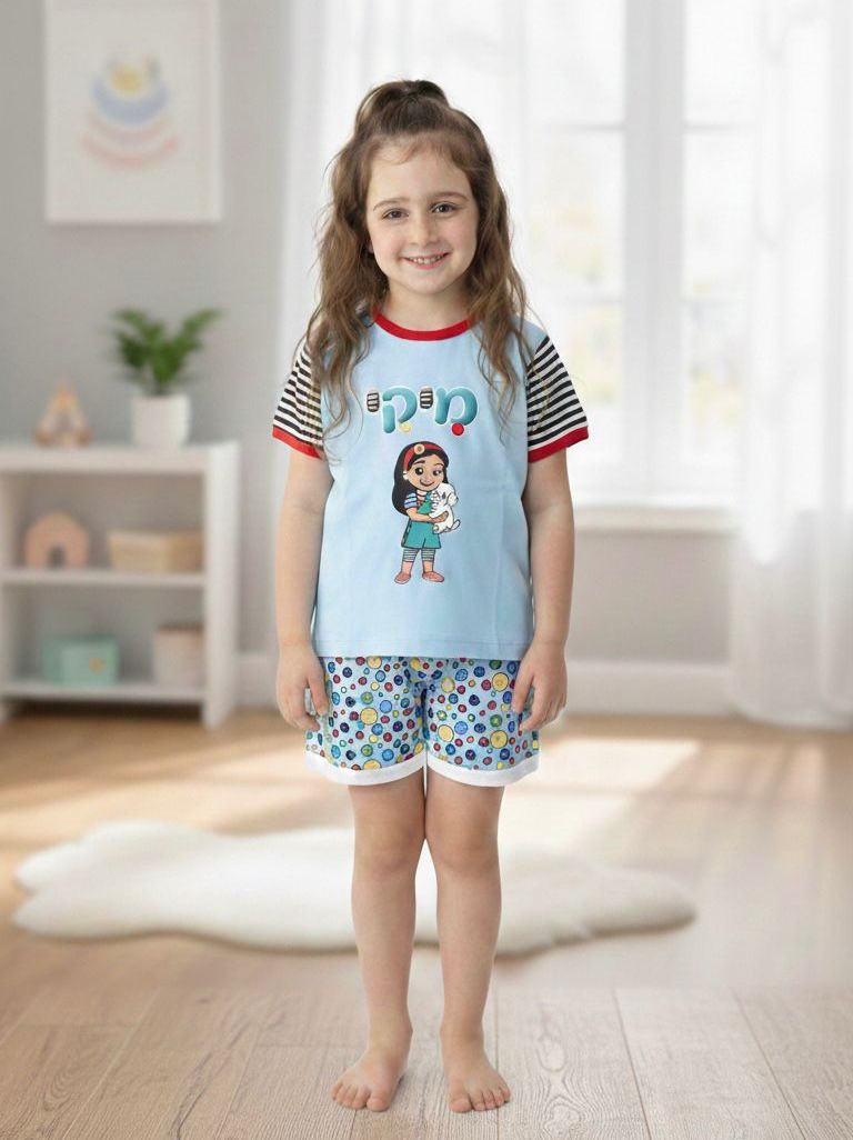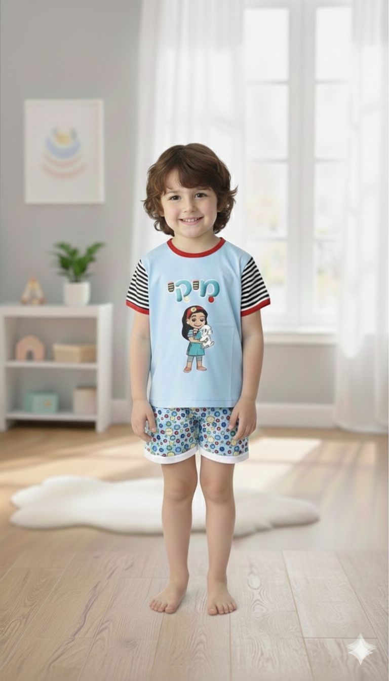 • סט פיג'מה הכולל חולצת טי קצרה ומכנסיים קצרים