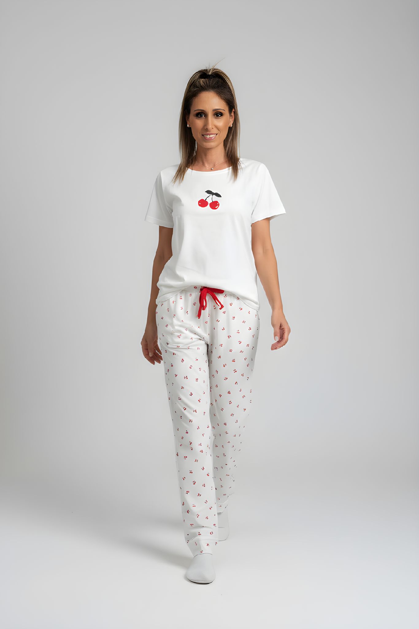 • פיג'מה קצרה לנשים עם דוגמת דובדבנים רעננה ועדינה