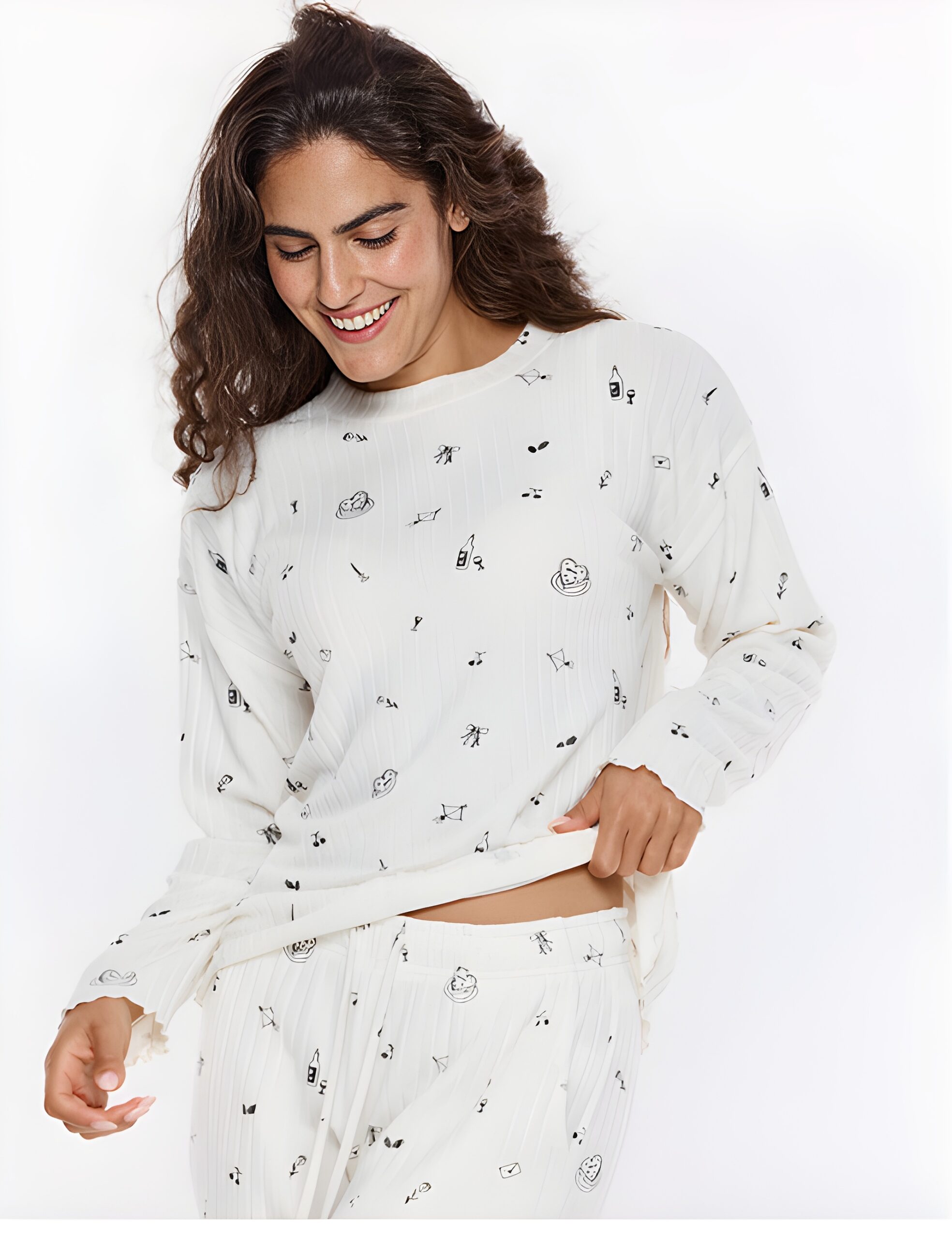 • סט פיג'מה המורכב מחולצה ארוכה ומכנסיים ארוכים