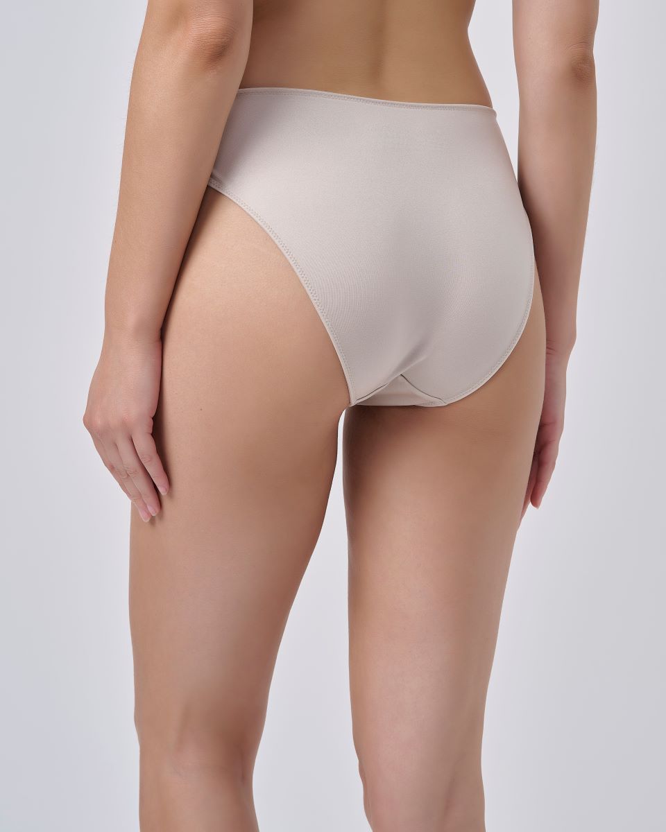 תחתון בגזרת ביקיני, מבד מיקרופייבר רך ואיכותי במראה מעט מבריק. שילוב של סרט תחרה ישר מאפשר משחקי אטום ושקוף.