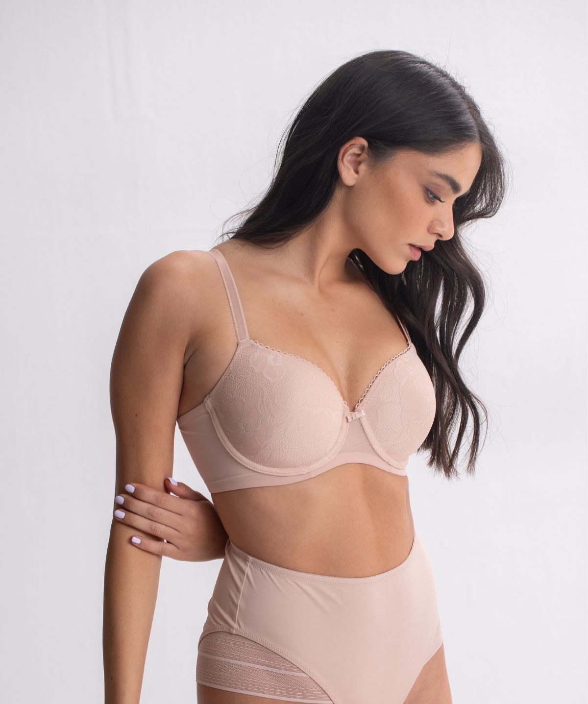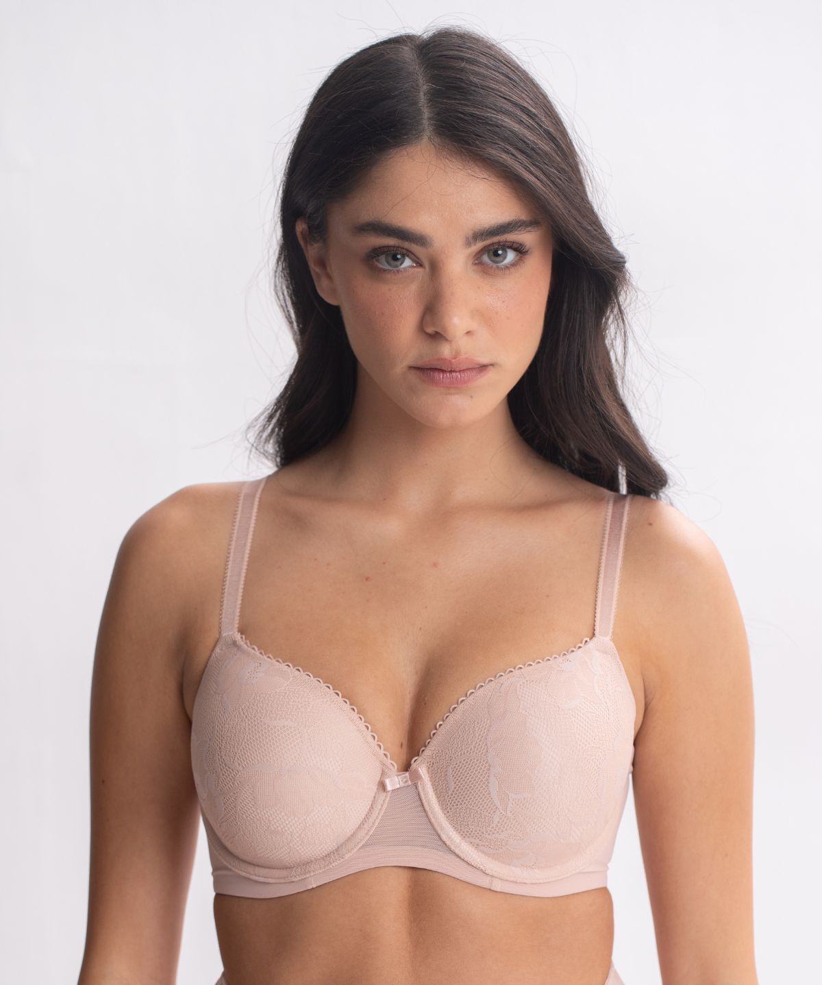 חזייה מרופדת בטי-שירט עם כיסוי מלא, קשת גמישה, ריפוד רך שמסתגל לגוף והדפס פסים עדין. מיועדת לתמיכה מיטבית ולנוחות ביום-יום.
